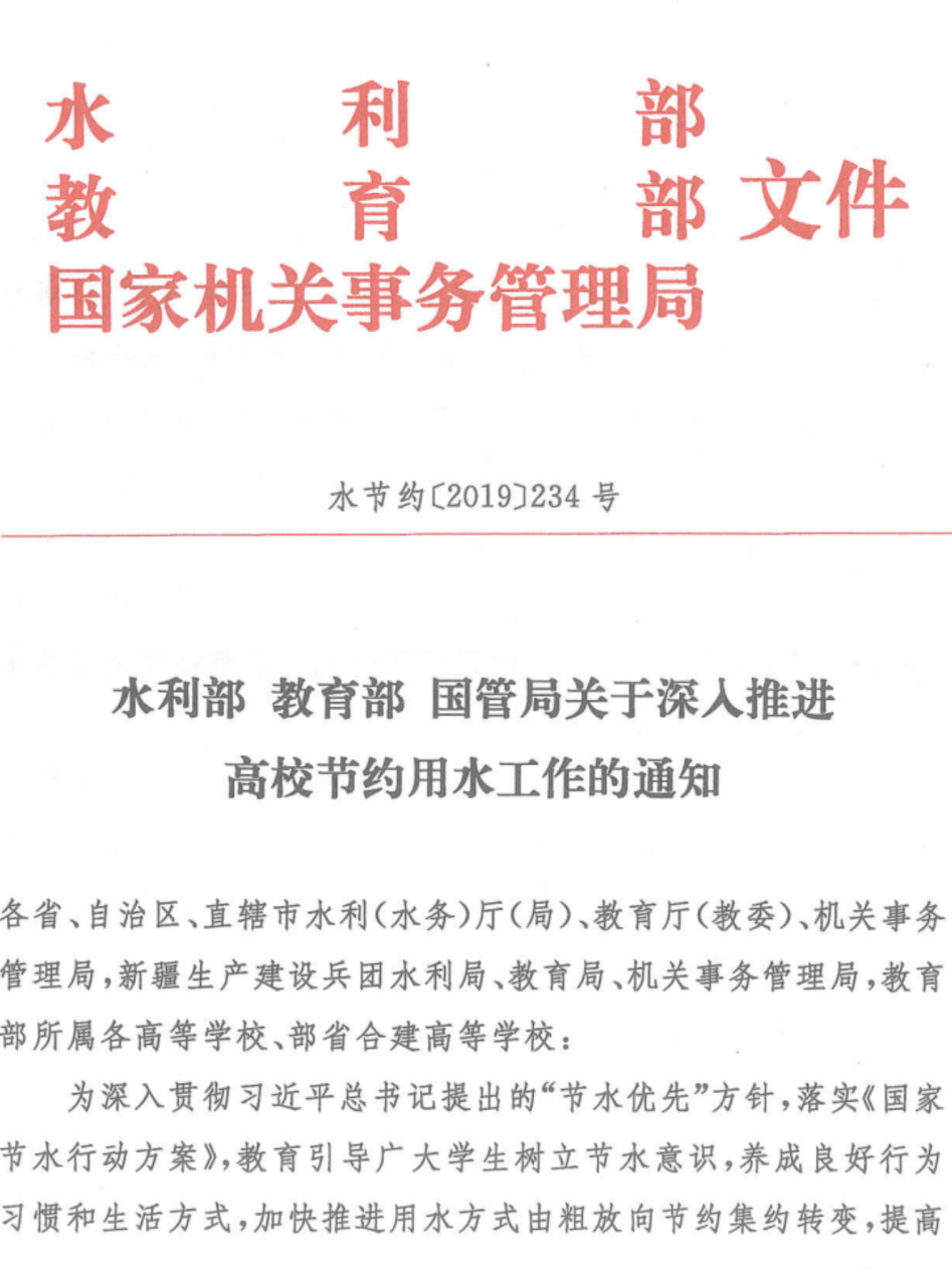 為實現(xiàn)“雙碳”戰(zhàn)略目標、節(jié)水型、綠色學(xué)校的建設(shè),多年來威派格利用數(shù)字技術(shù)在校園節(jié)水領(lǐng)域的應(yīng)用,多措并舉實現(xiàn)水資源集約節(jié)約利用。高校城是公共用水大戶,是節(jié)水型社會建設(shè)的重要組成部分,擁有著巨大的節(jié)水潛力。2019年8月,水利部、教育部、國家機關(guān)事務(wù)管理局聯(lián)合印發(fā)《關(guān)于深入推進高校節(jié)約用水工作的通知》,明確節(jié)水型高校建設(shè)的方向。2019年4月,國家發(fā)展改革委、水利部聯(lián)合印發(fā)的《國家節(jié)水行動方案》中也明確提出到2022年,建成一批具有典型示范意義的節(jié)水型高校。