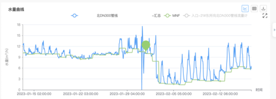 在DMA供水分區(qū)管理系統(tǒng)中,通過夜間小流量實(shí)時(shí)監(jiān)測(cè),監(jiān)控管網(wǎng)漏點(diǎn),2022年交付項(xiàng)目中共計(jì)監(jiān)測(cè)漏點(diǎn)千余處,有效降低產(chǎn)銷差3-5個(gè)百分點(diǎn);